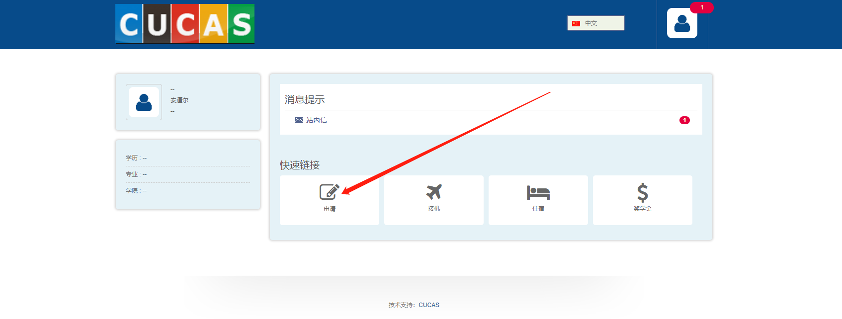 6、点击“开始申请”,发起申请。(右上角可以进行语言切换)